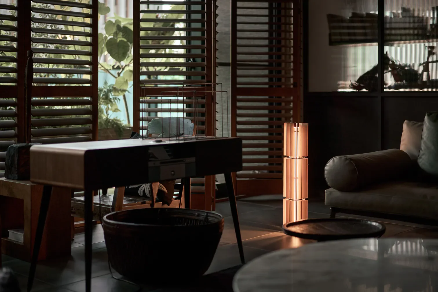 The Churros Lamp blends industrial style with Eastern aesthetics, using warm wooden strips to create a sense of depth. With built-in smart dimming functionality, users can effortlessly adjust the brightness for reading, relaxing, or setting the perfect mood—all with ease.